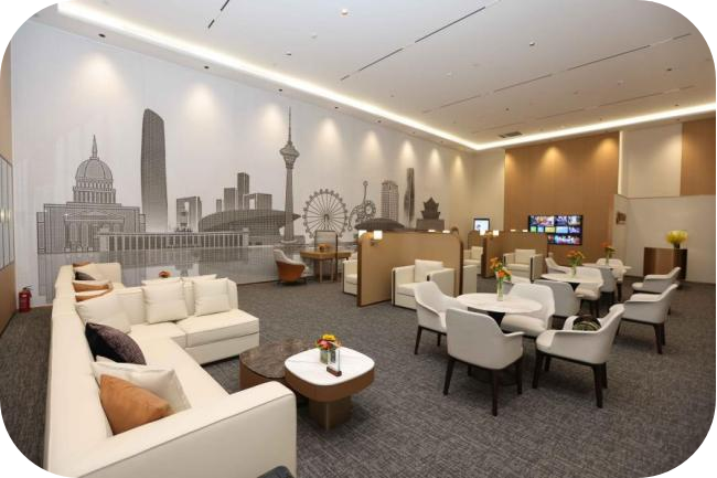 提供 VIP 休息室专属服务,免费尊享: 礼宾接送、协办国内航班值机手续、专属引导服务、贵宾安检通道、机坪礼宾接送。